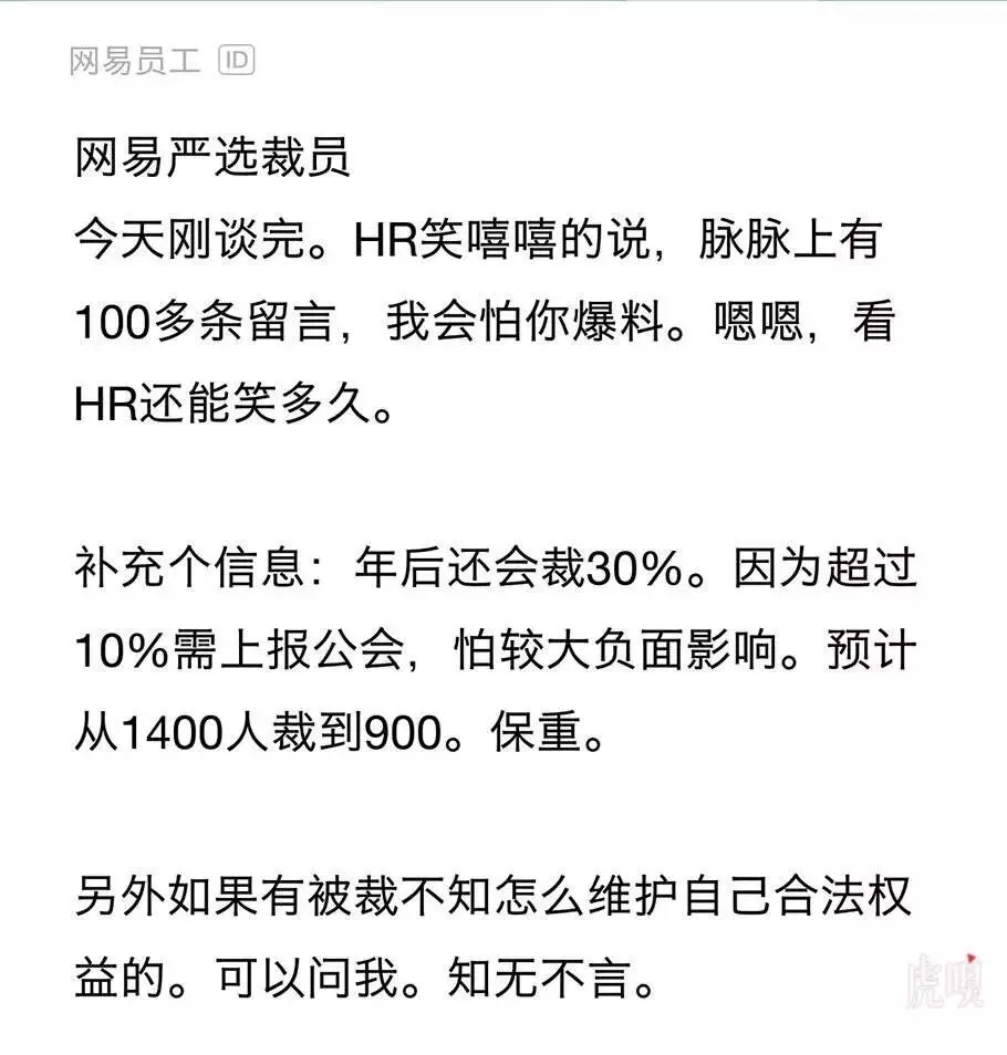 【网传网易严选年后会裁员,裁员比例高达30%】脉脉上有网友爆出网易严选将在年后裁员30%,从1400人裁到900人。