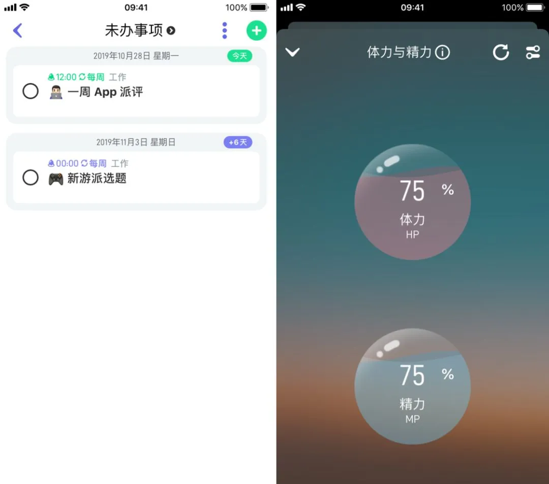 「知行日程」还支持简单的任务管理功能,并且能与系统「提醒事项」App 联动,「知行日程」会同步提醒事项中包括子任务在内的所有任务。此外,「知行日程」的「体力与精力」功能也让我眼前一亮,应用会根据你的日程安排计算你目前的体力与精力程度作为参考,让你能根据自己的状态合理地调整之后的日程安排。
