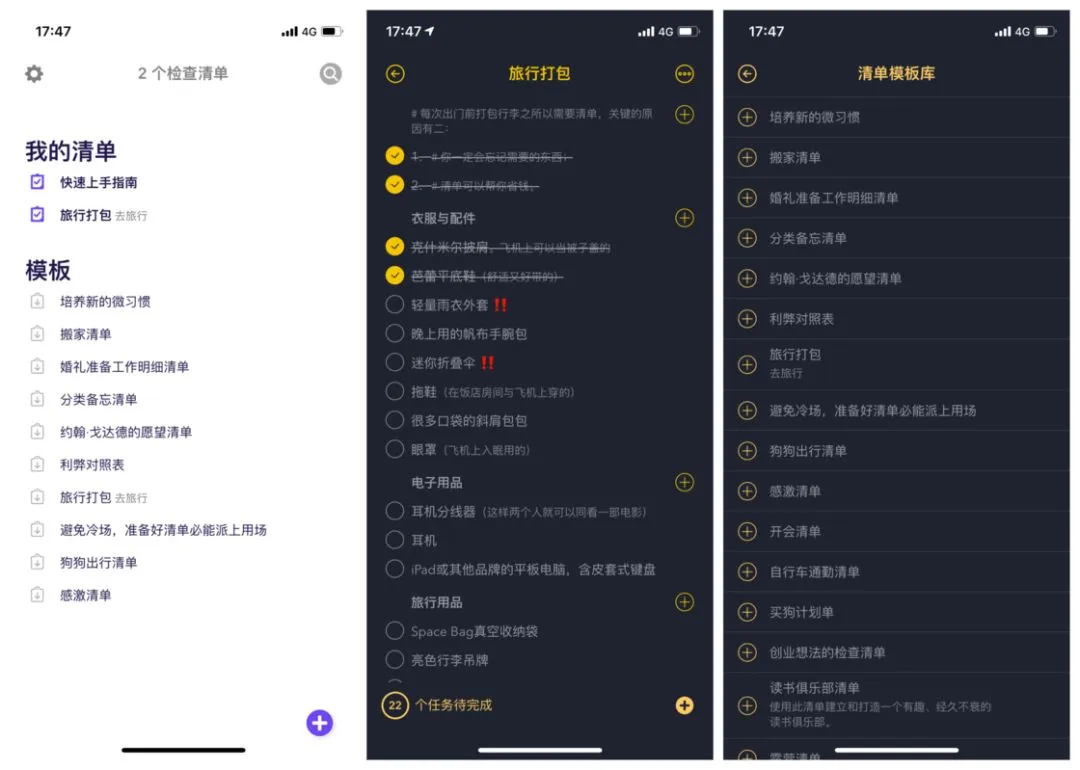 ▍我的清单:提供多个实用模版库的清单工具
