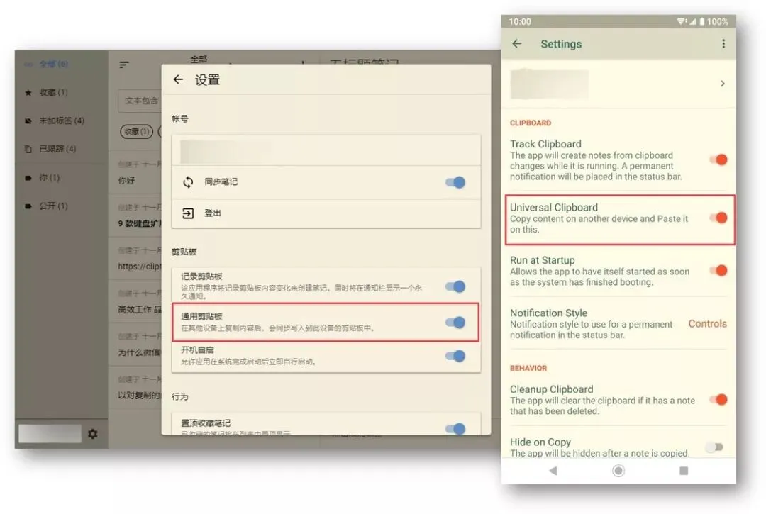Clipto Pro 不仅仅支持在设备间进行剪切板的同步,同时也为每个设备提供了「通用剪切板」的开关,用户可以自由决定在设备间进行单向还是双向的同步。例如当我们开启 Android 端的「通用剪切板」开关后,通过 Win 端复制的文字便能直接被写入 Android 设备的剪切板,方便我们直接进行粘贴。而当我们为所有设备关闭这一开关时,Clipto Pro 便会停止写入其他设备的剪切板而仅仅进行文字内容的同步。