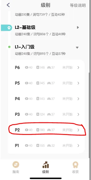 如果你觉得app的测试结果不准确,也可以手动修改,选择适合孩子的英文水平。具体操作如下: