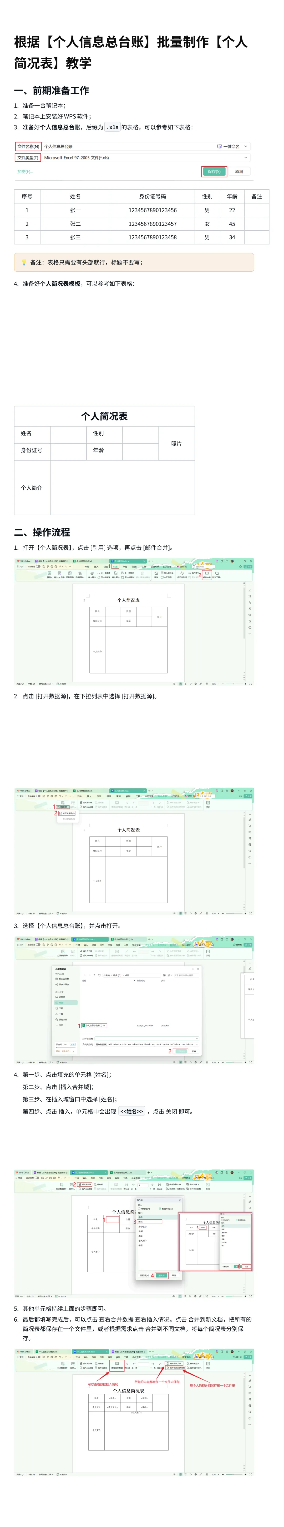 总结:WPS 邮件合并批量制作个人简况表操作指南