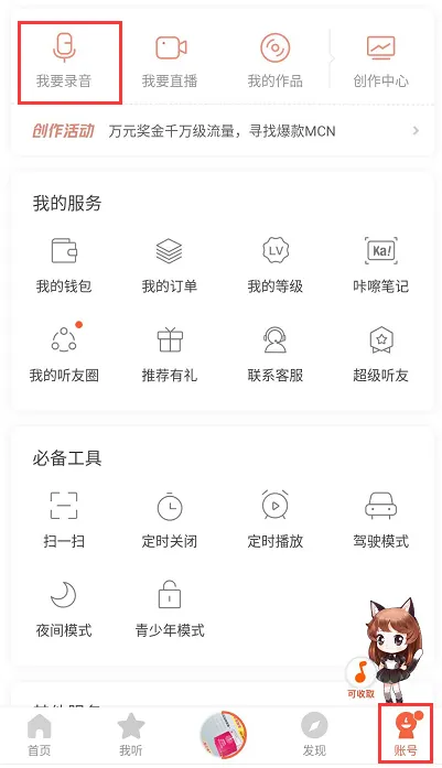 (第一步:“账号”-”我的录音“)