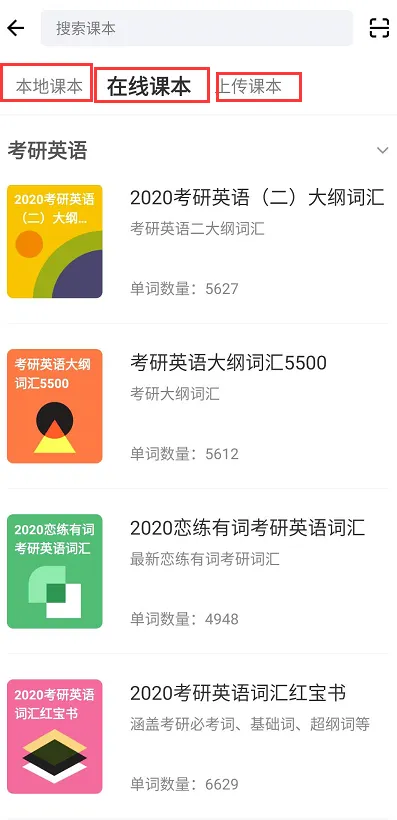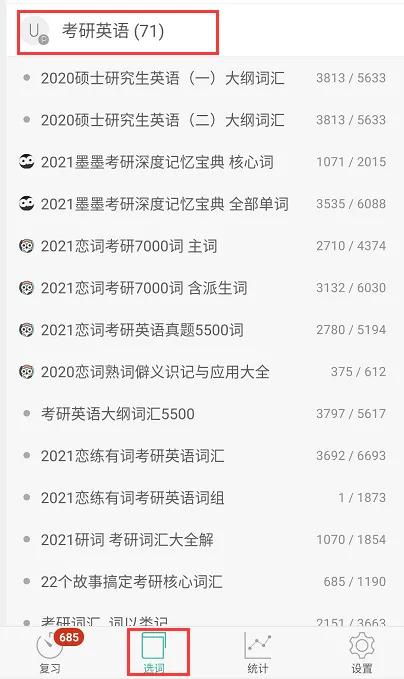 说明:可以自己搜索需要的词书,但是不一定有,关于考研的词库部分需要付费。