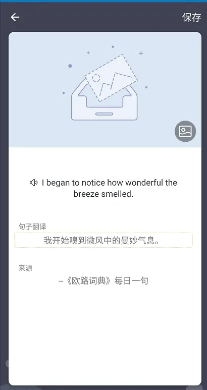 说明:“词典”菜单栏的每日一句,每天会推送一句话并附带精美的图片,最重要的是它还可以制作专属于自己的壁纸!还有每天听力、热门配音、拍照翻译、划线取词等功能。总的来说,欧陆词典就是一个英语学习的神器。