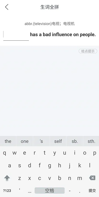 说明:这个板块按不同的形式进行单词的拼写,有全练拼写、首字母填空、听音辨意、听音复习。