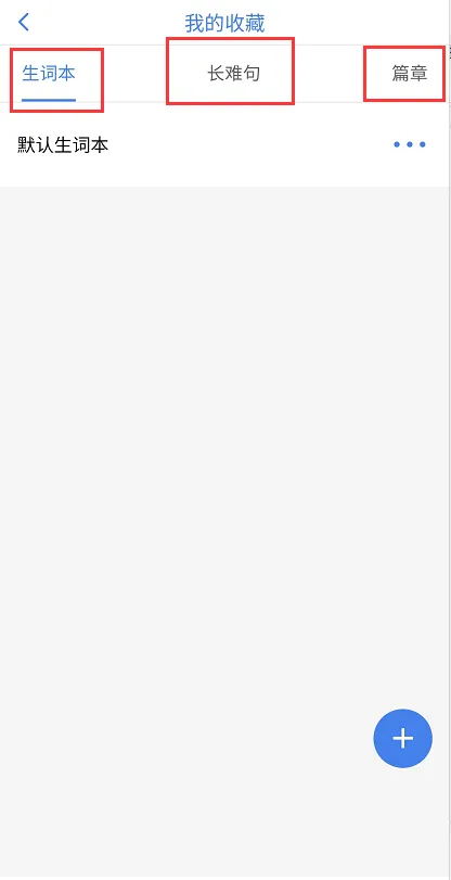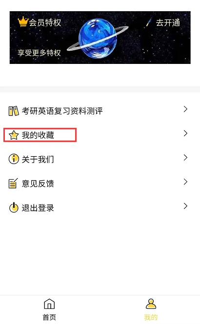 说明:“我的”菜单栏中找到我的收藏,查看收藏的生词本、长难句、篇章。