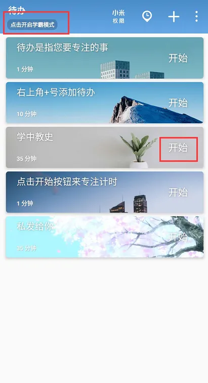 (第一步设置待办事项和专注学习时间)
