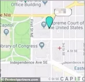 用户实时位置显示在美国最高法院图源:PenTestPartners公司网站