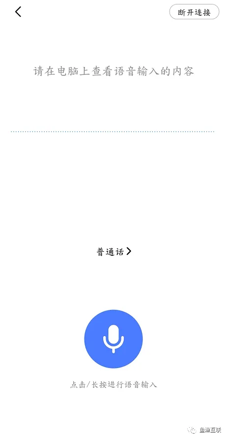 最后手机上面就会变成下图页面,直接安装说话,即可自动在电脑上面输入,真正的你能说多快,打字速度就有多快。