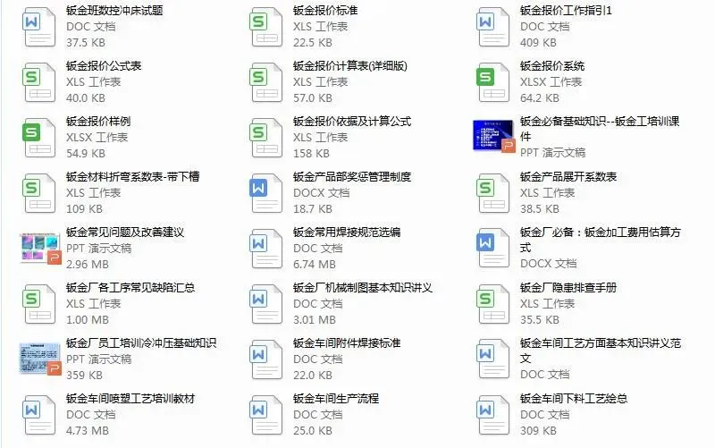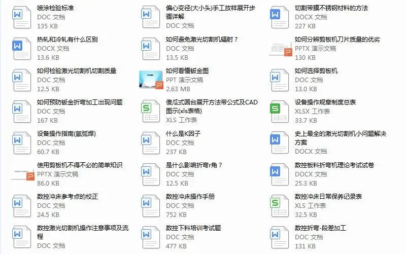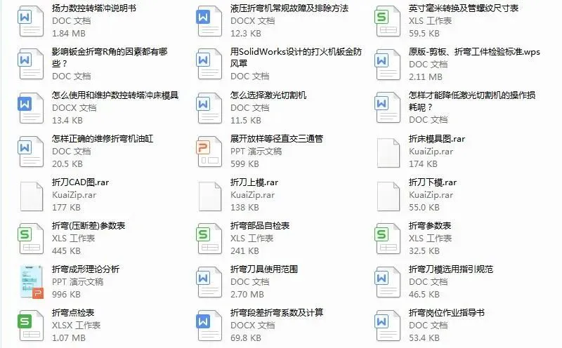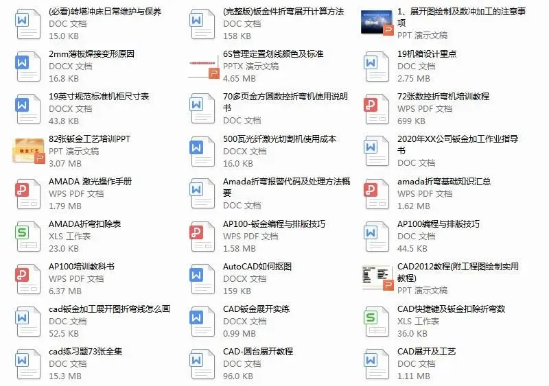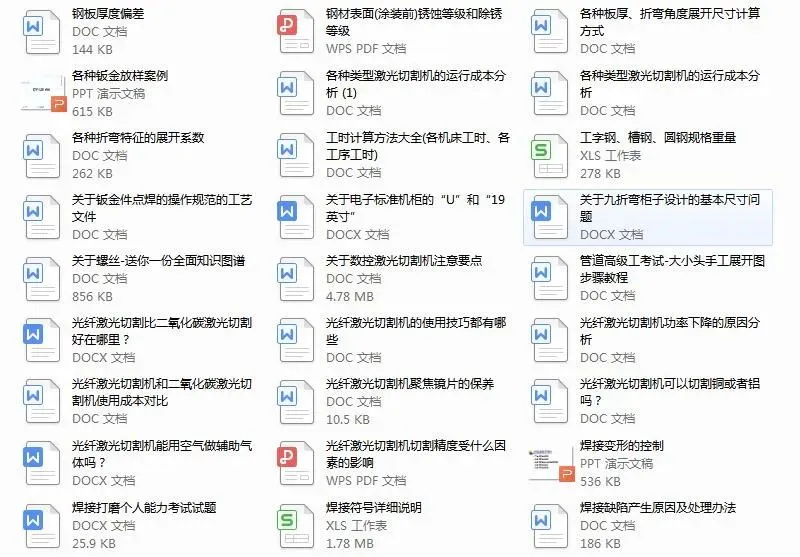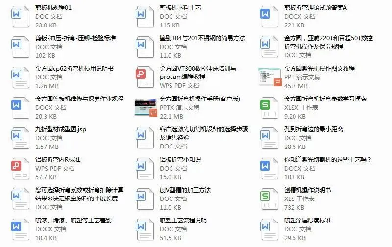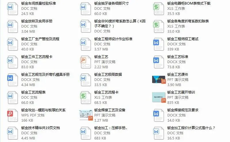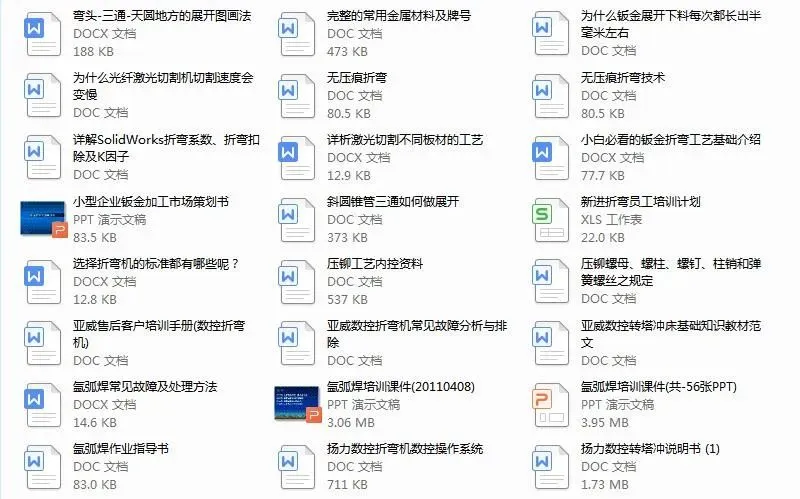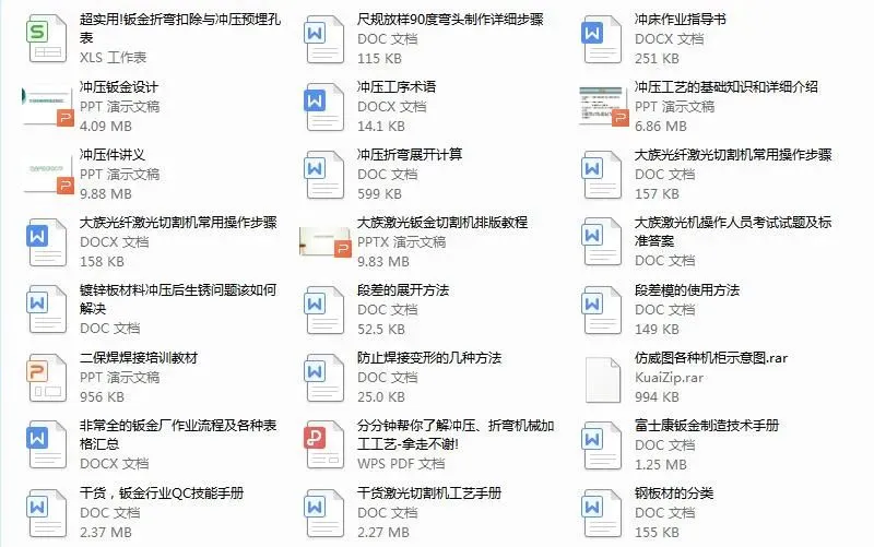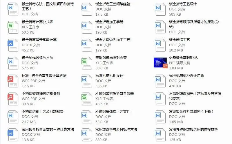 全是小编几年来收藏的钣金干货,包括钣金工艺及设计,折弯,激光切割,数控冲床,焊接等各方面的都有工510个文件,下载后学习,目录在下面