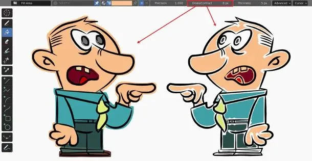 还有在用颜色填充闭合笔刷时,视觉上最令人愉悦的变化是,填充工具现在有一个扩展/收缩设置来扩展或缩小填充区域,这样的话可以实现填充和笔刷重叠的效果,或者在笔刷内部留下白色边框,如上图所示。