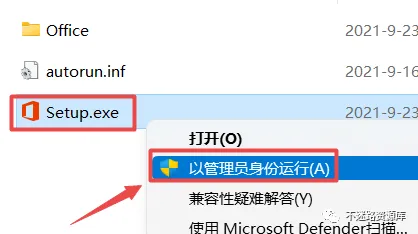 3.选中“Setup.exe“,鼠标右键点击“以管理员身份运行”