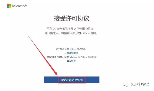 27、点击“接受并启动Word”