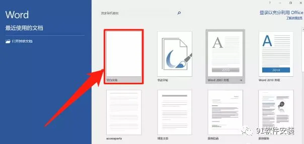 13、看下图,点击空白文档。