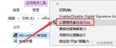 17、右键”MicroKMS 神龙版”,选择“以管理员身份运行“。