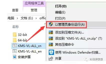23、右键”KMS-VL-ALL_cn”然后选择”以管理员身份运行”