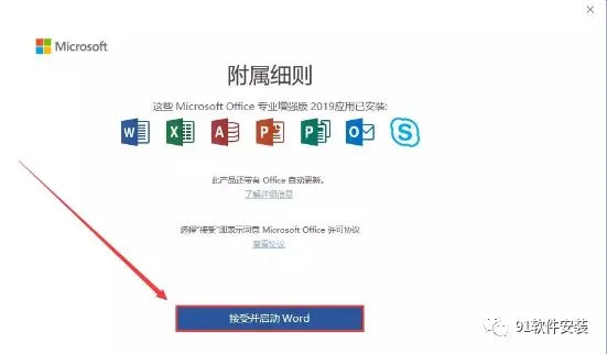 12、点击“接受并启动Word“。