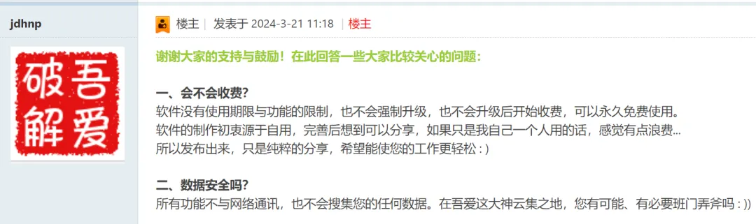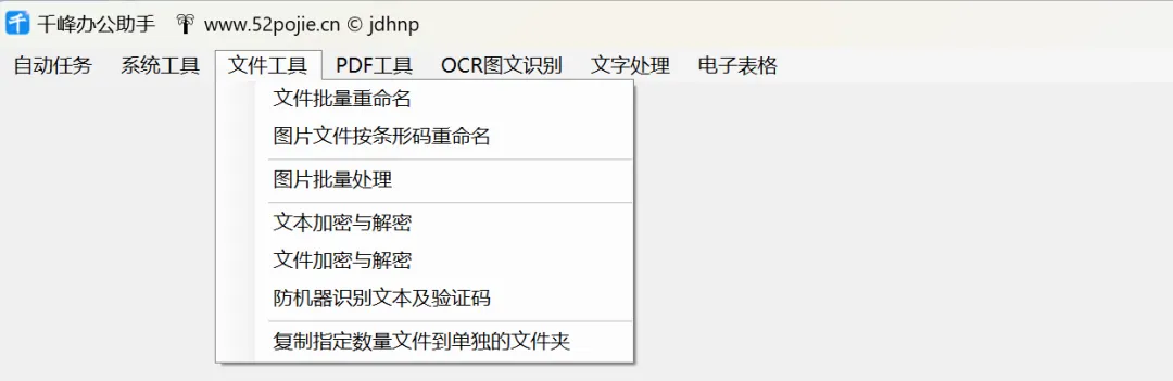 最近吾爱破解论坛一个叫jdhnp的大佬分享了他创作的软件:千峰办公助手,内置30+实用功能,并且作者表示,可以永久免费使用,没有强制升级机制!
