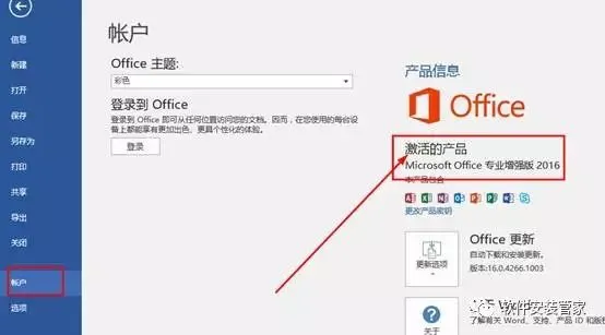 10、我们可以打开word2016,点击文件,账户,在产品信息中查看是否激活成功,激活成功如下图,显示为激活的产品