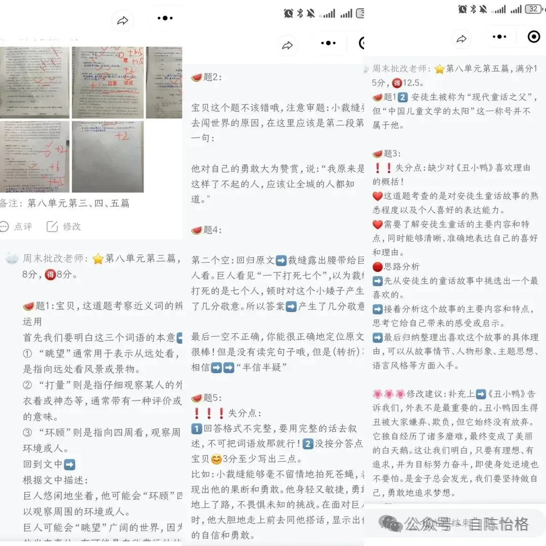 卷面批改实行打分制,文字点评会指出问题所在并给出订正建议。