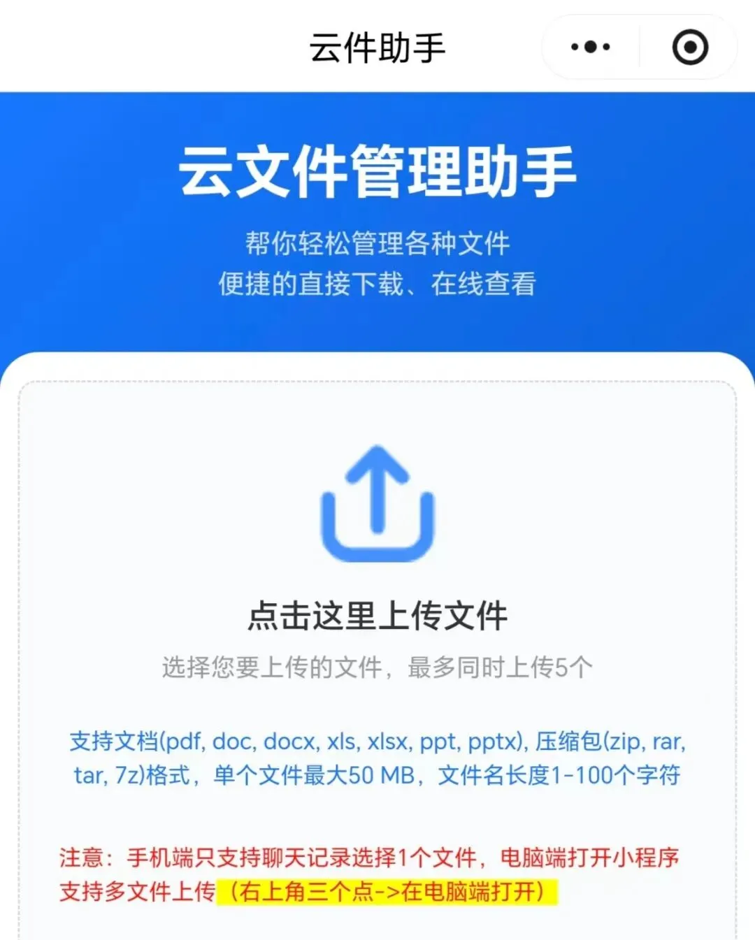 “云件助手”小程序,共享文档管理助手