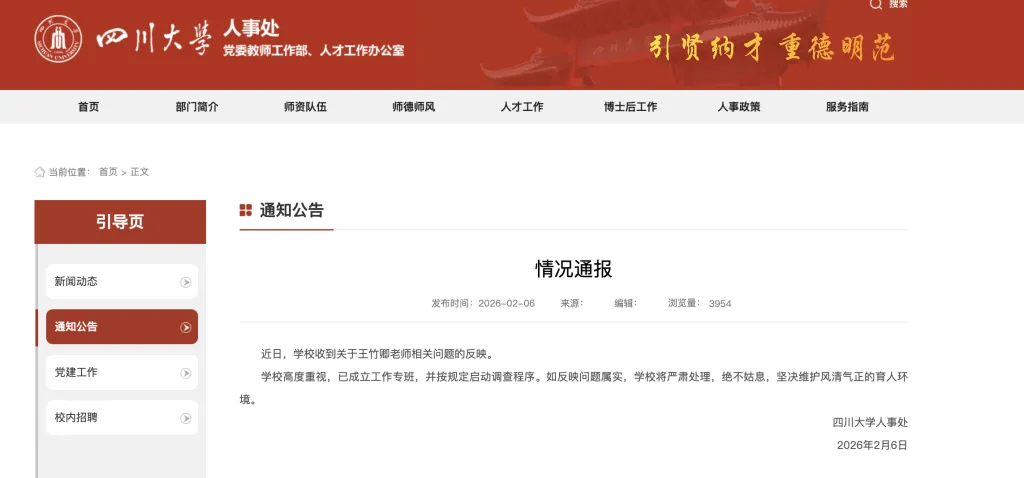 近日,学校收到关于王竹卿老师相关问题的反映。