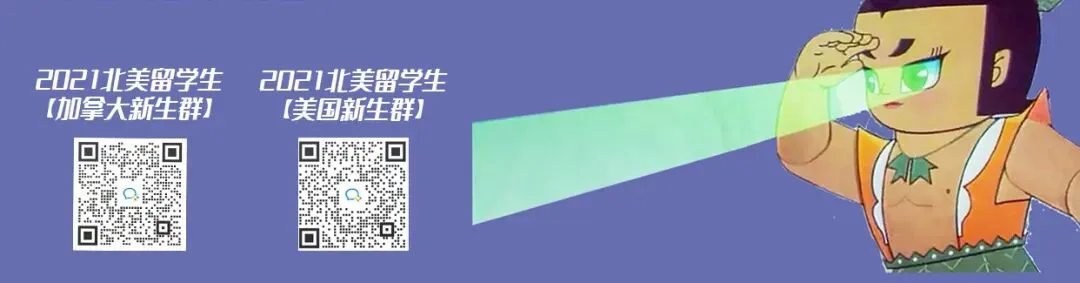 猛戳下方二维码,加入【2021北美留学生新生群】,留学萌新需要了解的所有东西都在这里啦👇