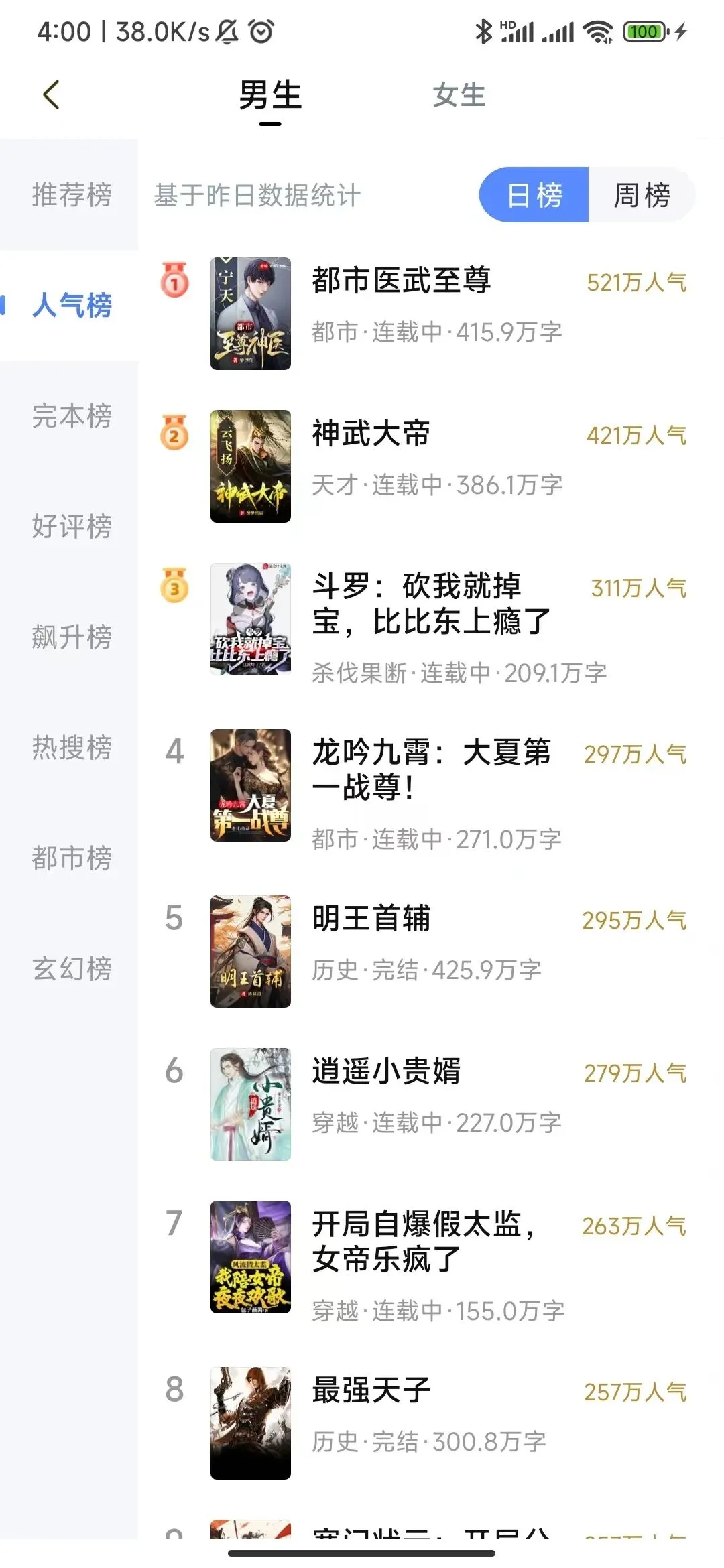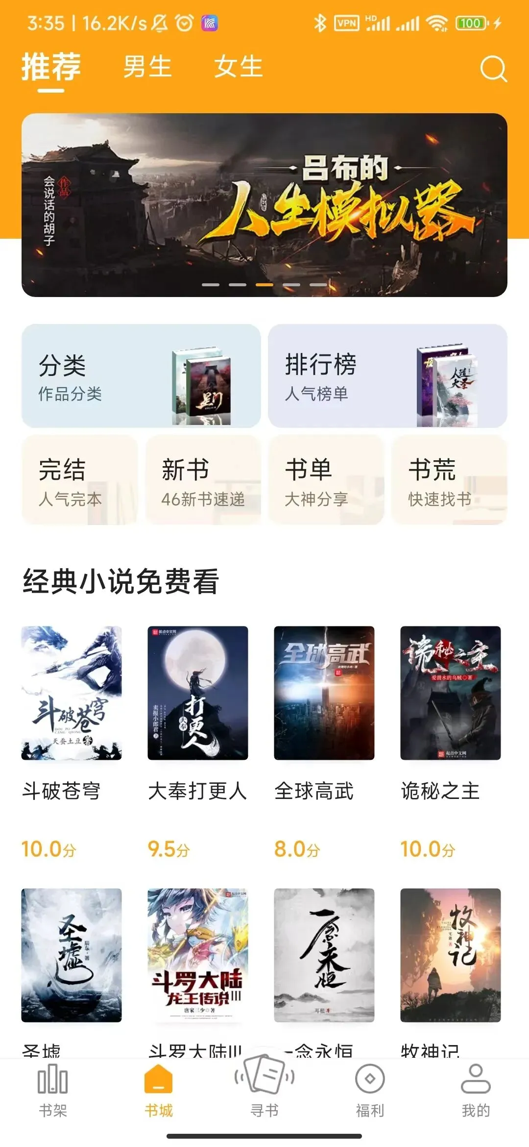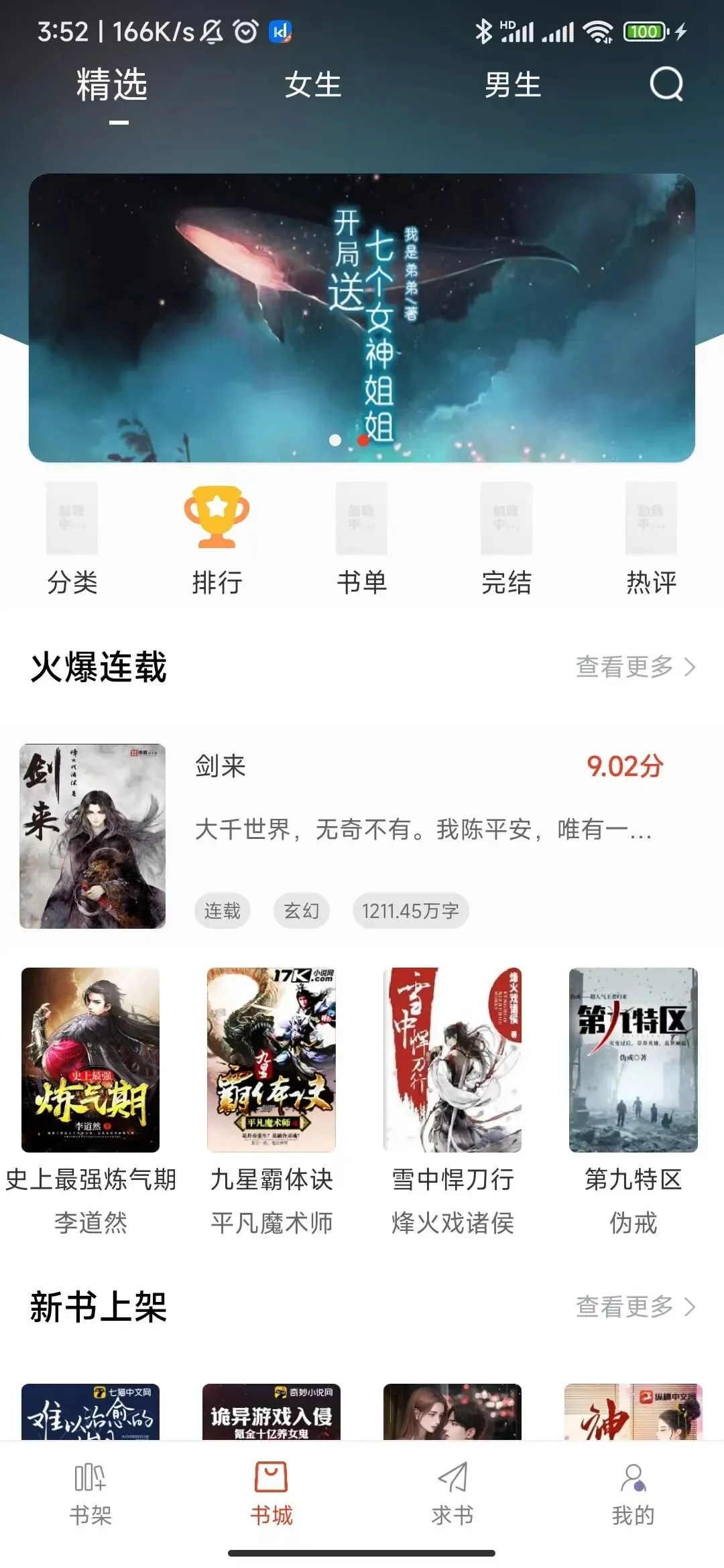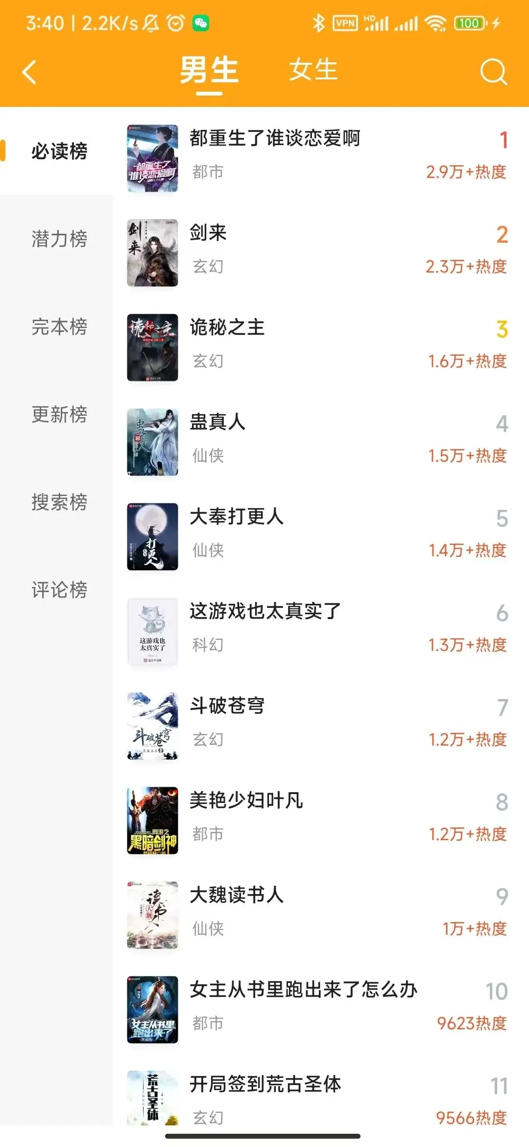 支持榜单阅读,分男生板块女的板块,更新及时,非常不错的一款看小说工具!