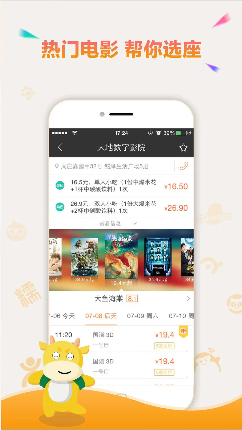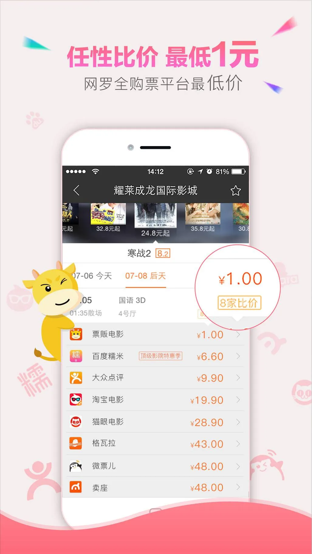 明天你想去看一场电影吗?我还挺想去看爱乐之城哈哈。在保证观影体验的同时我们都希望能买到尽可能便宜的电影票,不过附近电影院个数和购票平台种类都太多,一个个对比下来太麻烦!票贩儿能帮你解决这个问题,挑选出附近最便宜的影院和最划算的购票平台,新人专享的优惠也都会被考虑在内!选好后直接在应用内就可以完成付款,不需要跳转。用后的确觉得方便不少,买电影票的速度变快了~
