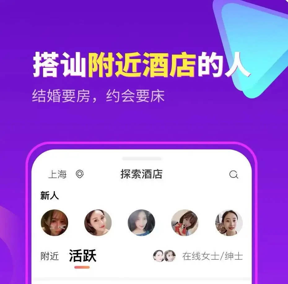 首先,这个App是给出差人士使用的,目的是“搭讪附近酒店的人”,而且还写着:“结婚要房,约会要床”。