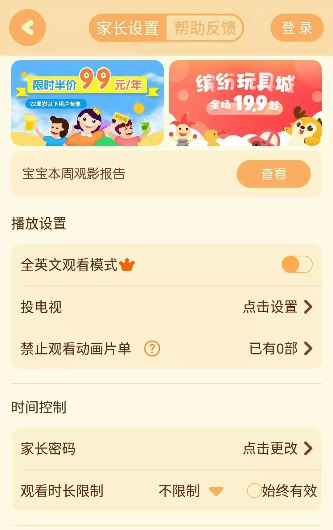在主页右上角的家长中心里,家长可以设置每次操作都要输入密码验证,确保每一项设置不是宝宝自己操作的~