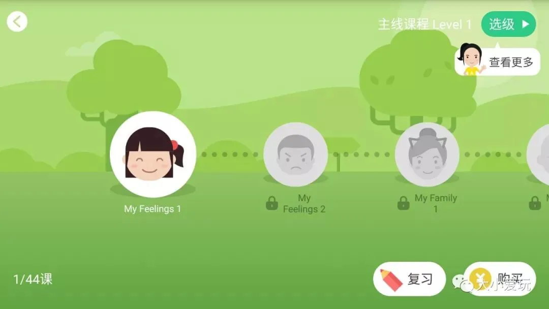 主线课程和自然拼读,都是闯关制,宝贝们只有学习完了第一关,才可以继续。而每一关都会让你在课程里仔细看、认真玩,然后大胆的说出来。小爱家的小朋友很喜欢,因为这里的课程画面色彩实在是太鲜艳了,小朋友一下子就被吸引了。