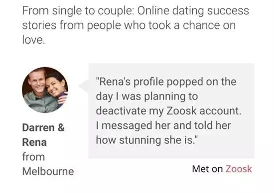 “Rena的资料在我准备停用我的zoosk账号时出现在我的界面,我给她留言告诉她,她是多么的打动我”