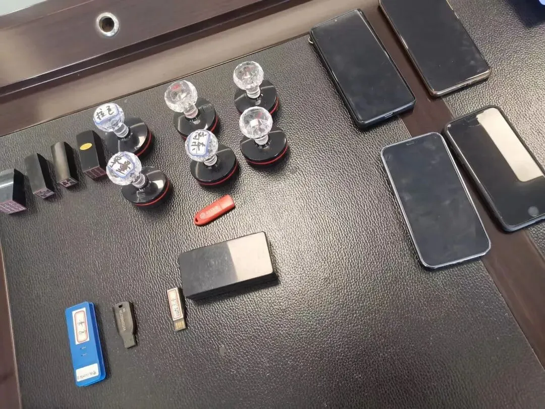 图为涉案手机等物品