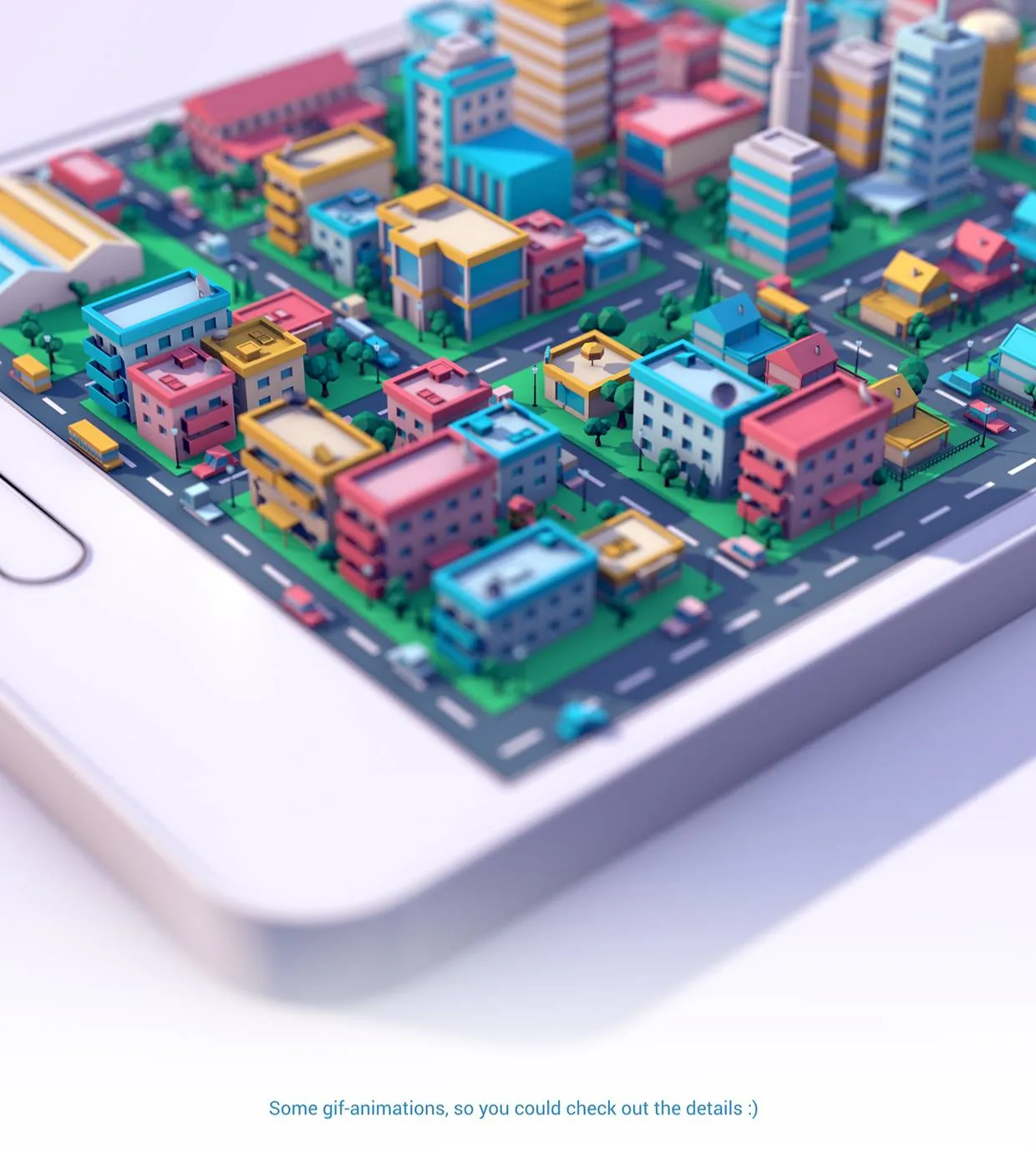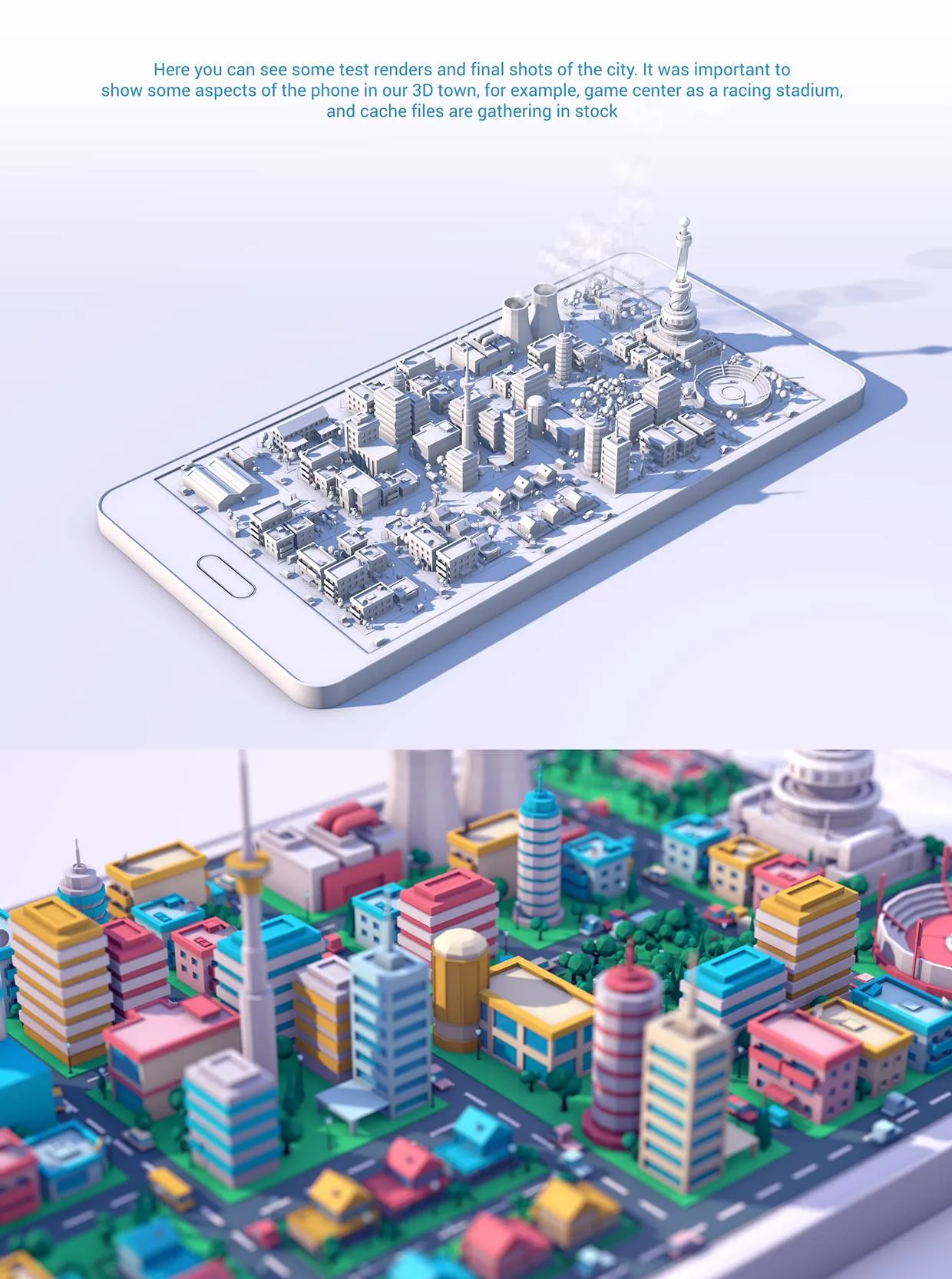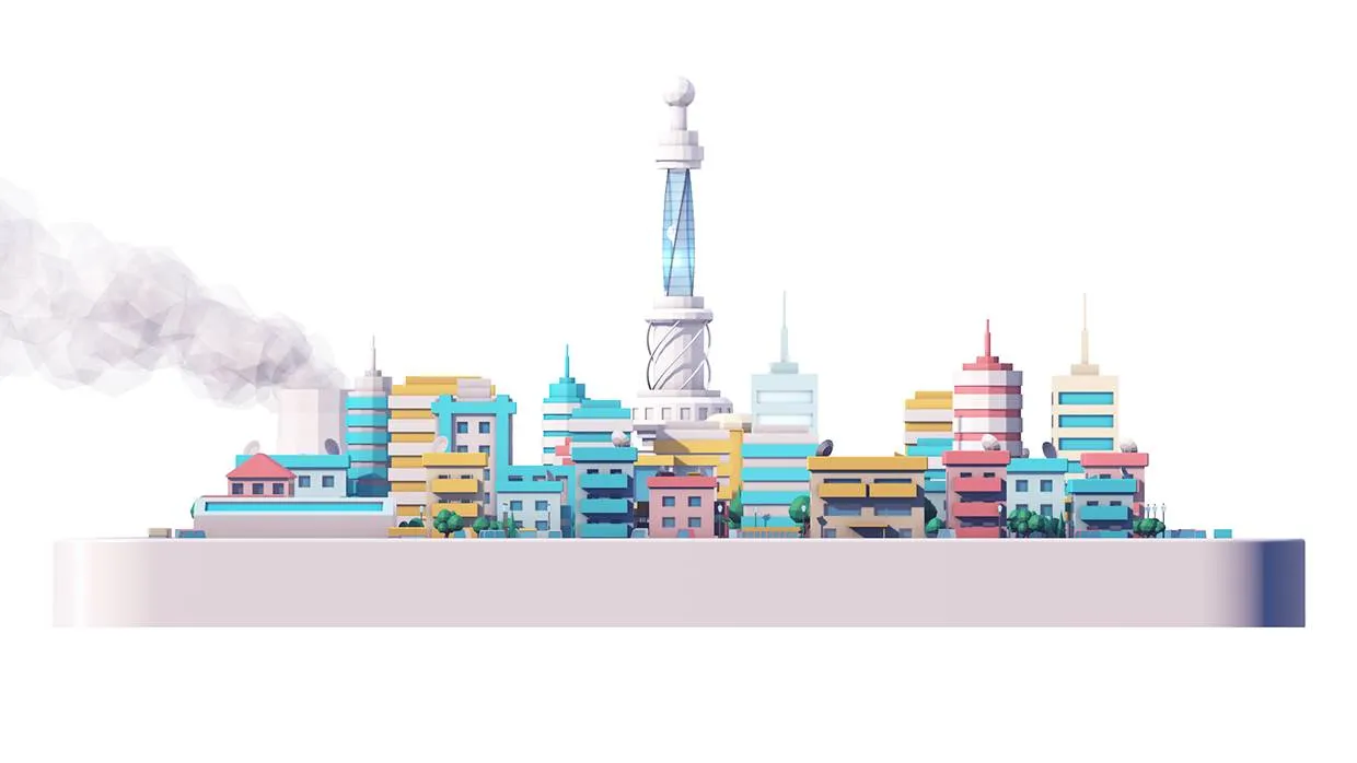 视频中手机的运行被比喻成城市的运转,以低多边的立体风格展示城市的风貌,非常有创意。