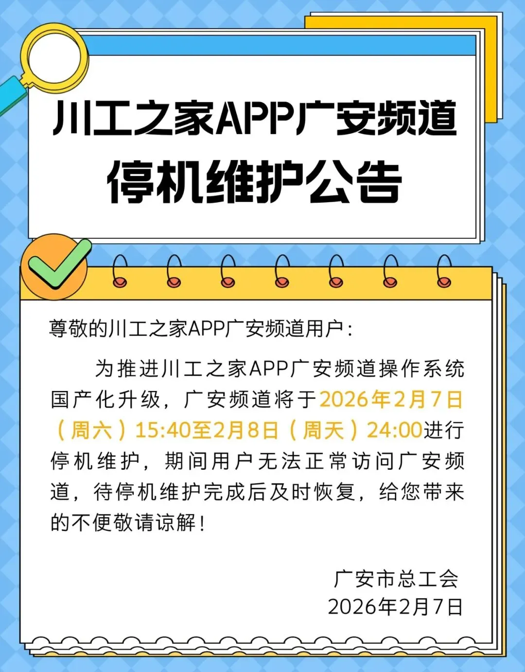 川工之家APP广安频道停机维护公告