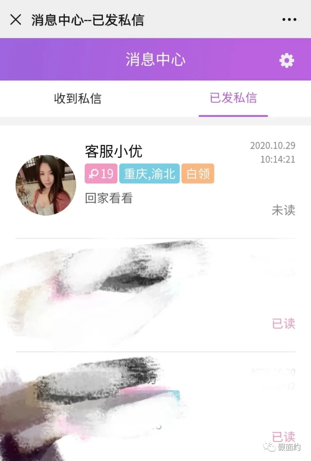 假面约->消息中心->已发私信,列表中可以看到您发送私信对方是否阅读了。