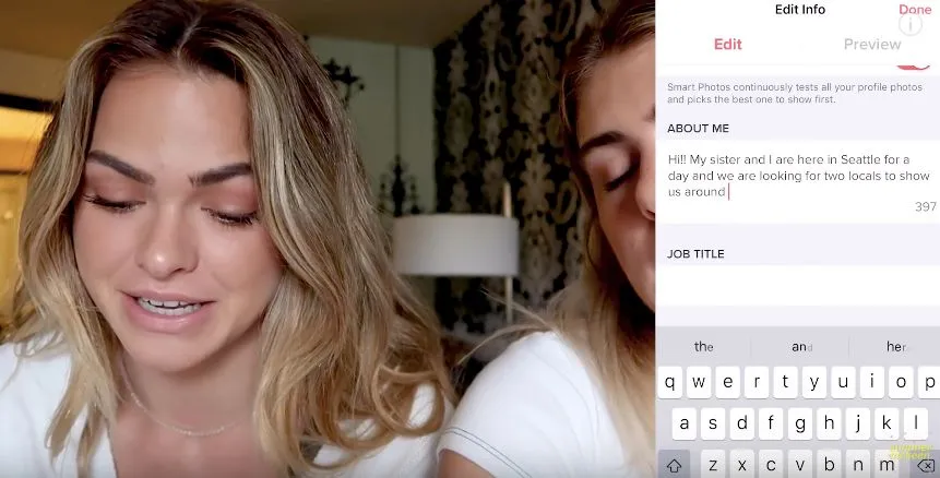 “我只想说这个试验真的很有趣,我很幸运能够和Tinder的团队一起来做,这个事业是被控制了的(是真的上面的用户,不是演员),所以对于我和我的姐姐来说都很安全。