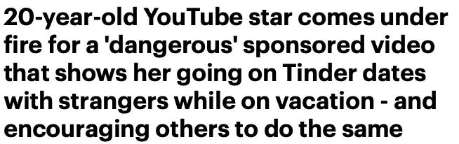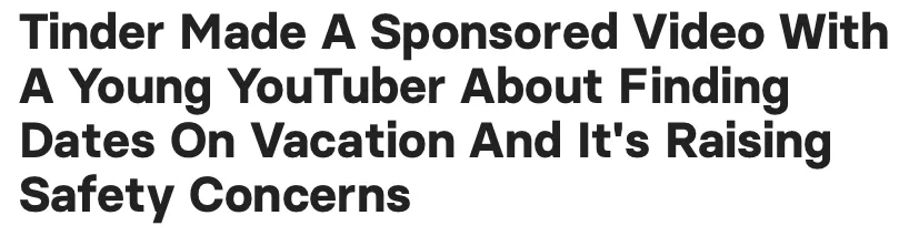 最近,全世界最有名的社(约)交(P)软件Tinder犯了这个重大的错误——他们最近寻思起做一期“真人秀”,让粉丝众多的某位油管博主亲身体验一下自家软件的“旅行交友”功能。