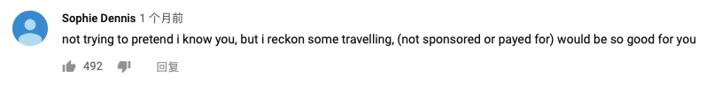 “不想假装很了解你,但是我的确推荐你去多旅行一下,不是赞助的或者被给钱的那种,这对你有好处。”