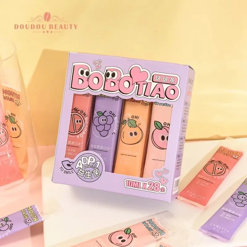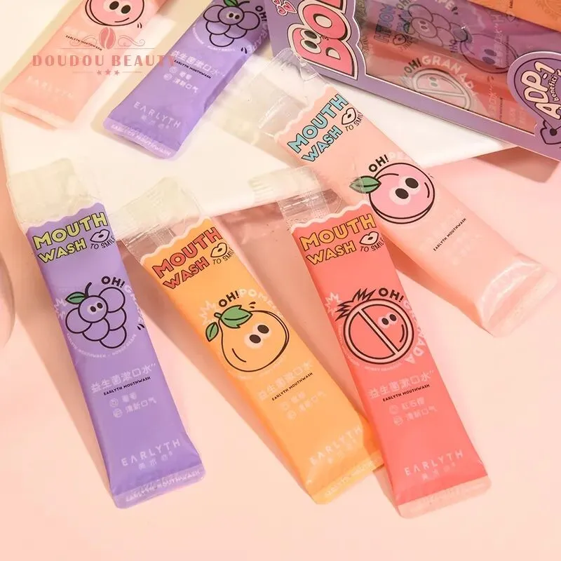 我买的是这种水果味的漱口水,清新不辣口,而且方便携带,颜值还很高,口喷就是之前推荐过的ora2果味,也是小小一只,推荐给大家!!