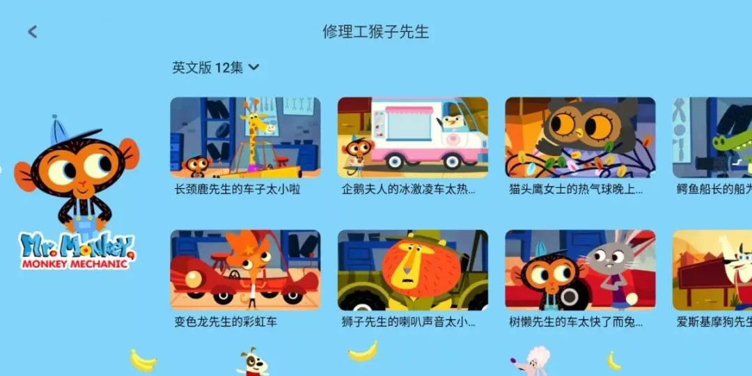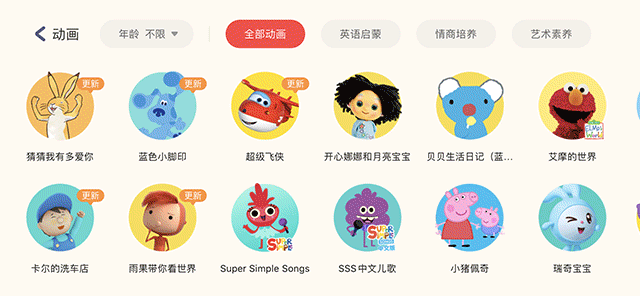小小优趣除了引进了Super Simple Songs儿歌全集,还独家引进了Super Simple旗下全系列动画,这些动画也是积累英语词汇、学习基础英语句子、进一步提高英语水平的好材料。即便不是针对英语启蒙,里面多部动画片对思维训练、艺术和情商启蒙都是不错的。