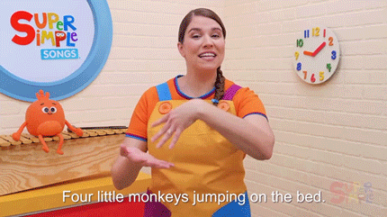 在这首How Many Fingers中,音乐节奏非常欢快,四个小怪物也非常可爱,孩子们会情不自禁地跟着它们一起数手指、拍掌、数脚趾、跺脚。