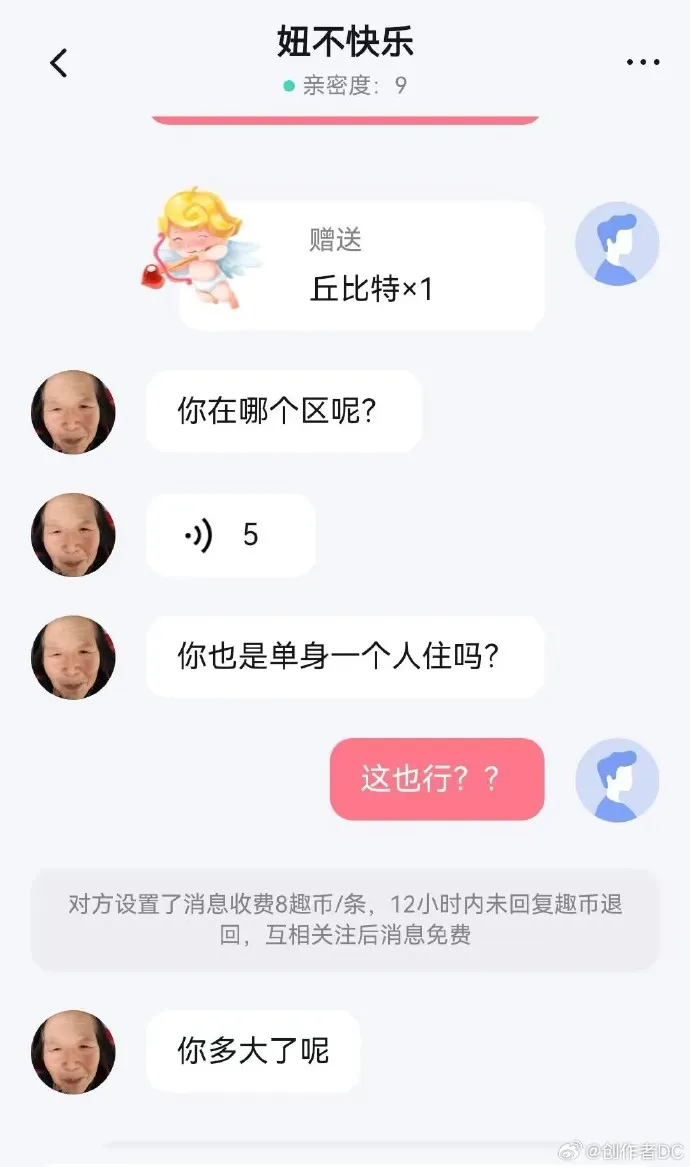几乎瞬间,你成功匹配到多位 70 多的老奶奶聊天。