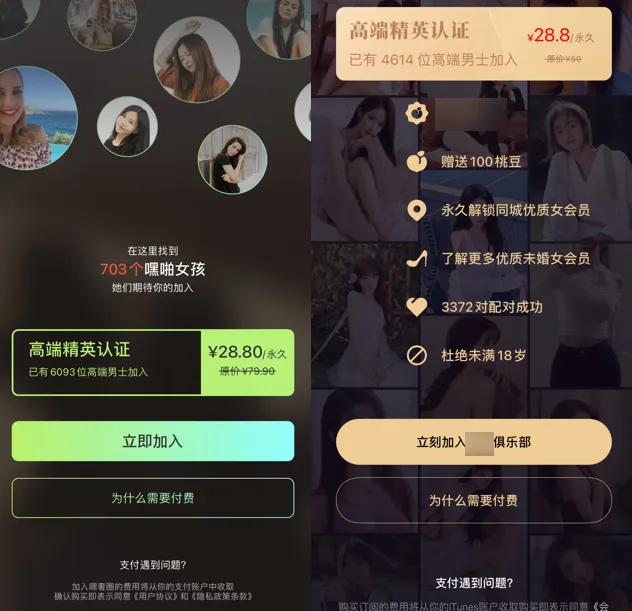 因为 “ 擦边商业 ” 有其固定市场,所以有人开发起了专门的 APP ,当然是付费的,有买断制,买断费用在几十到几百不等。也有按条收费制,男生给女生发消息需要付费,价格通常在 1 块 / 条左右。