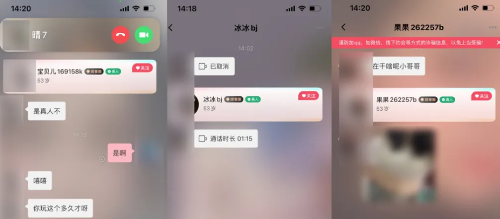一位 53 岁的老妹子正跟我热聊,另一位 53 岁的老妹就给我发来了视频通话,还有一位在给我发照片,难道一位 60 岁的大爷能有这么大魅力么?这也太扯了。。。