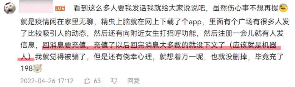 总之,上去聊天的男的肯定血亏,不会真有人觉得网络姻缘一线牵吧?对方就是想你多说话赚你钱而已,女的也很难赚,随便一个封禁,就 G 了,笑到最后的只有这些搞擦边的软件罢了。