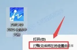 8.在桌面上找到“ZWCAD 2025 简体中文版”软件图标,鼠标右键选择“打开文件所在位置”