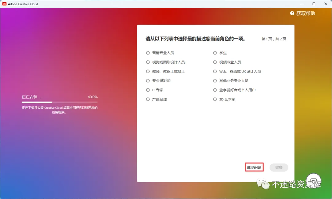 7.正在安装Creative_Cloud创意云,等待安装完成,选项可以点击跳过